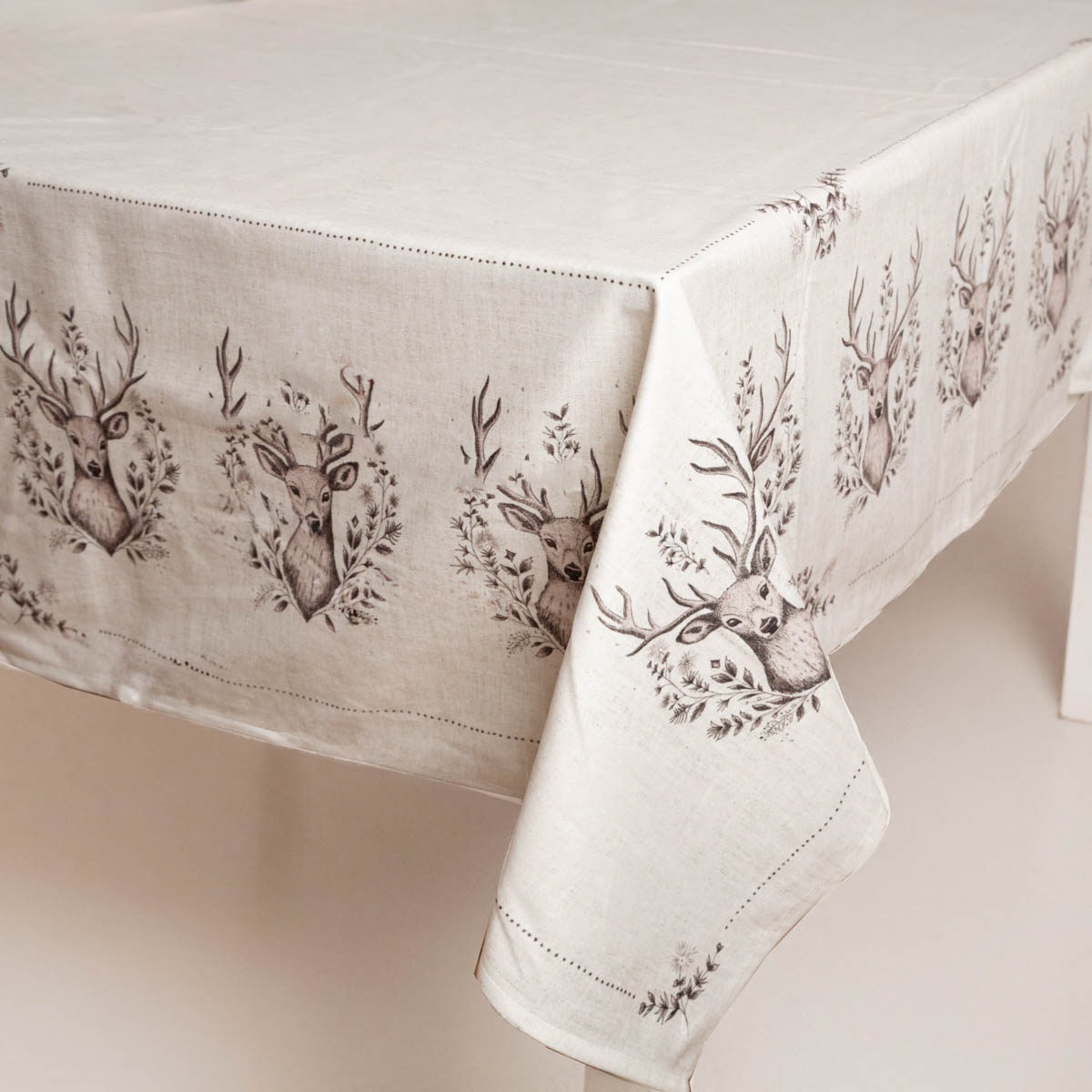 Tischdecke Hirsch Elias Landhaus natur 145x200cm – pflegeleichte Mikrofaser