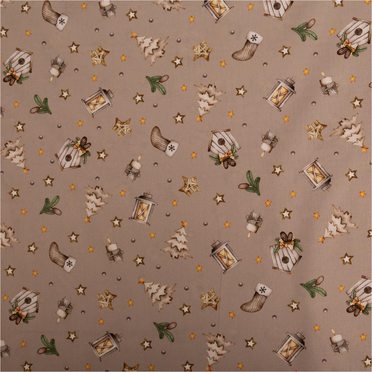 Du suchst einen fein gewebten Baumwollstoff für festliche Projekte? Diese Popeline in dezentem Beige bringt Laternen, Sterne, Tannen, Vogelhäuschen, Zapfen und Mützchen als Allover-Dessin auf deine Nähmaschine – perfekt für Deko, Accessoires und leichte Bekleidung.
