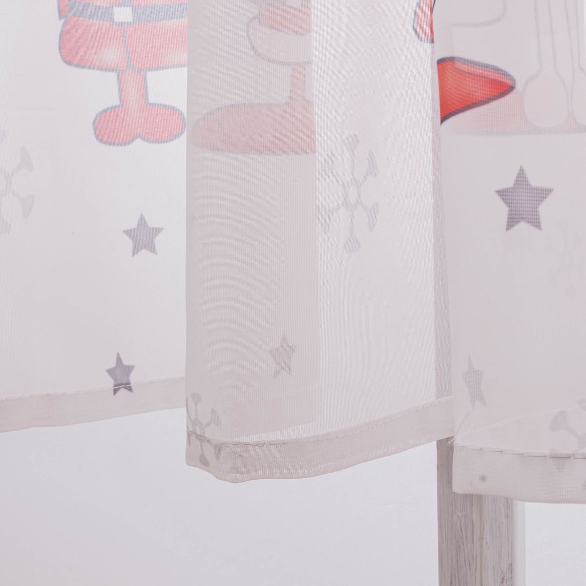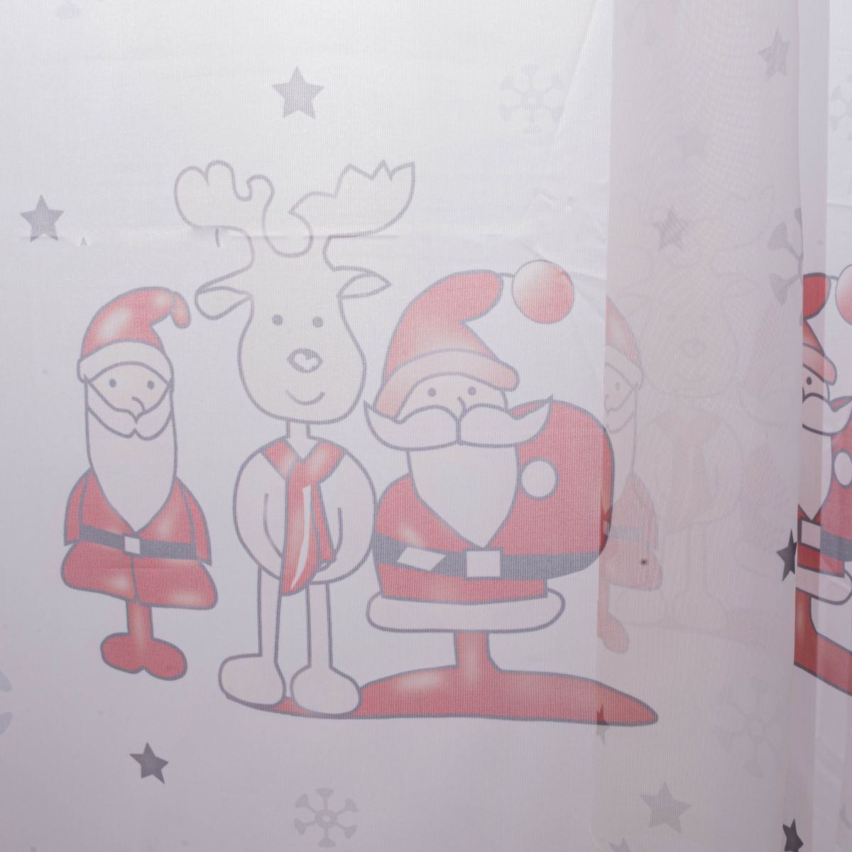 Bring mit dieser Weihnachtsgardine in Weiß, Rot und Grau festliche Stimmung in dein Zuhause! Die charmante Darstellung von Weihnachtsmann und Elch kreiert eine gemütliche und herzliche Atmosphäre, perfekt für die Feiertage. Die lebendigen Farben und das detailreiche Design sind ein echter Blickfang und machen jede Fensterfront zum Mittelpunkt weihnachtlicher Dekoration. Der transparente Stoff sorgt für Sichtschutz, ohne dabei das Tageslicht auszusperren.