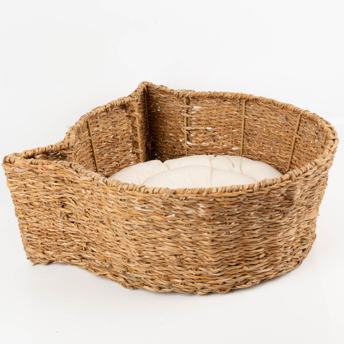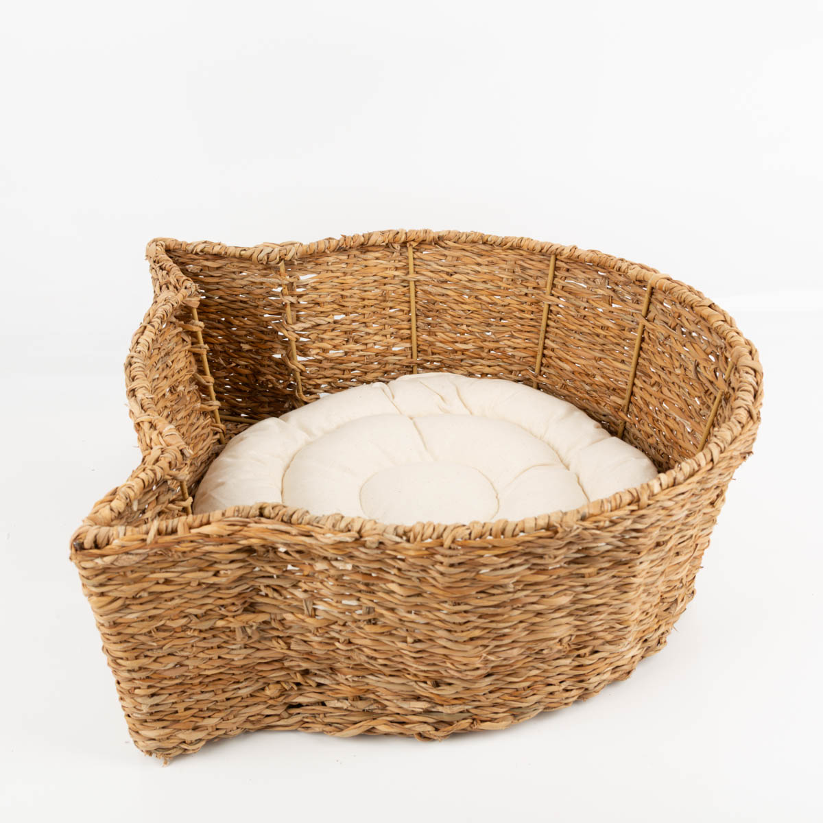 Du suchst einen gemütlichen Schlafplatz für deine Katze? Dieser handgewebte Korb aus Naturfasern bietet mit seinem hohen Rand Sicherheit und Geborgenheit. Das weiche Kissen ist herausnehmbar – perfekt zum Lüften und Reinigen. Dank der Ohrenform wirkt der Korb charmant und passt in viele Wohnstile.