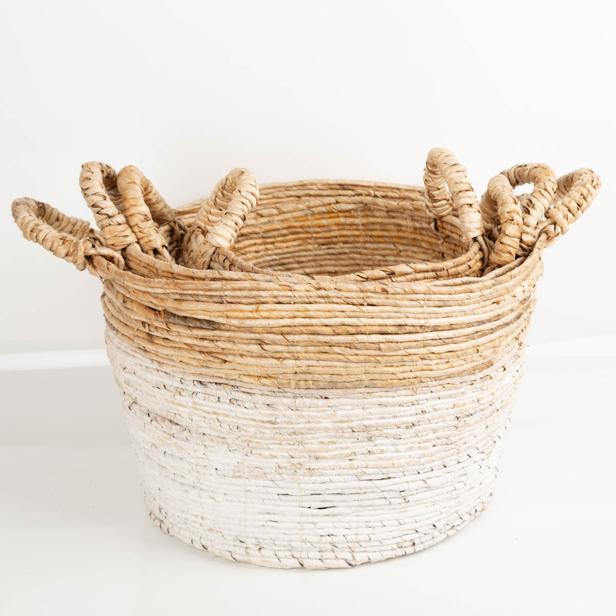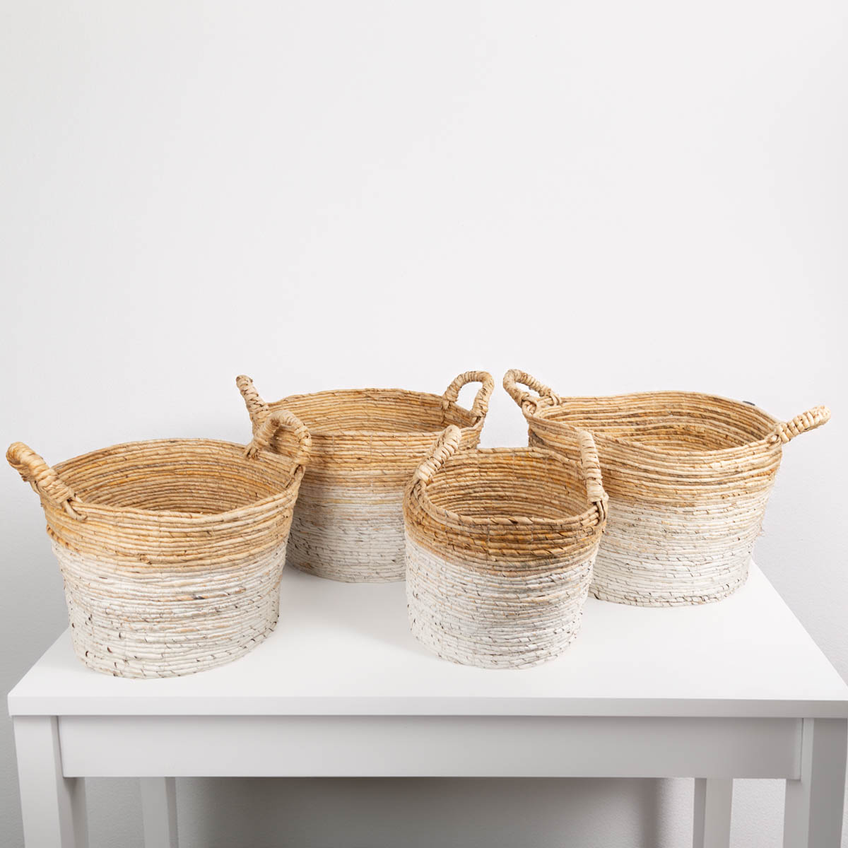 Korbset XL Bananenbaumrinde 4 teilig natur weiß von Werner Voss