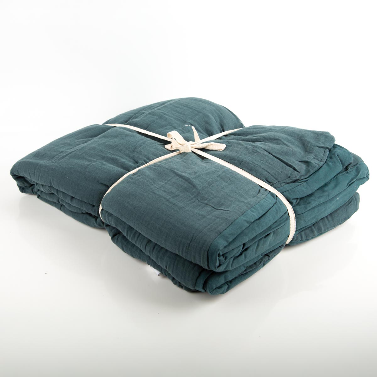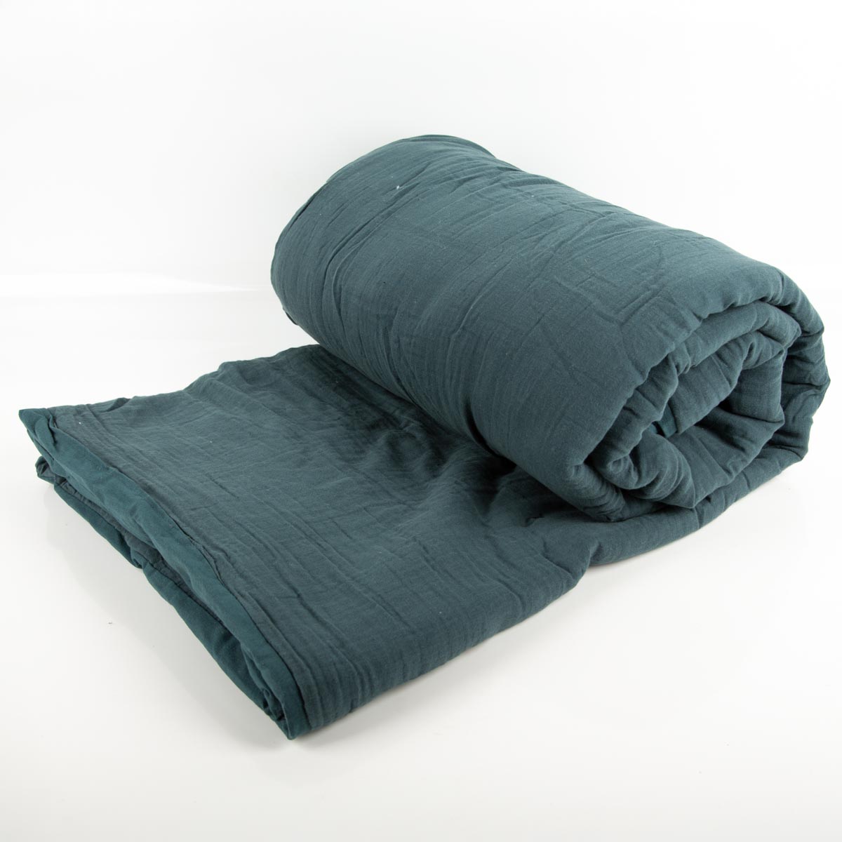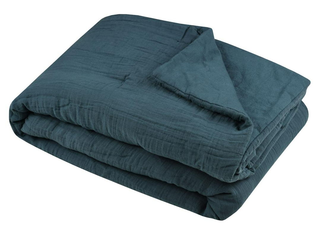 Große Musselindecke aus Baumwolle gefüttert einfarbig petrolblau 180x220cm
