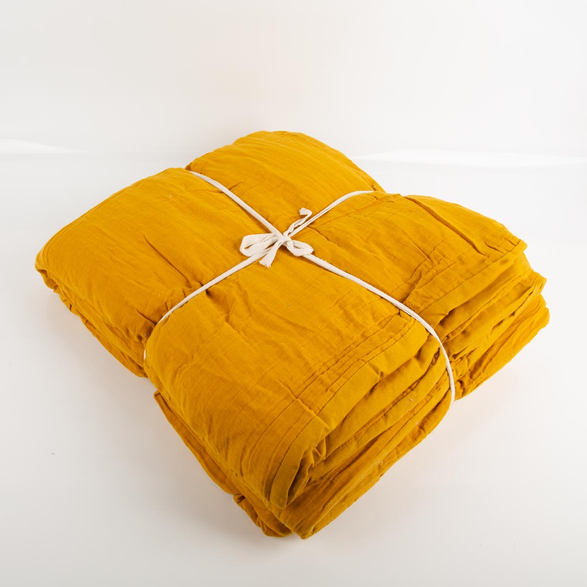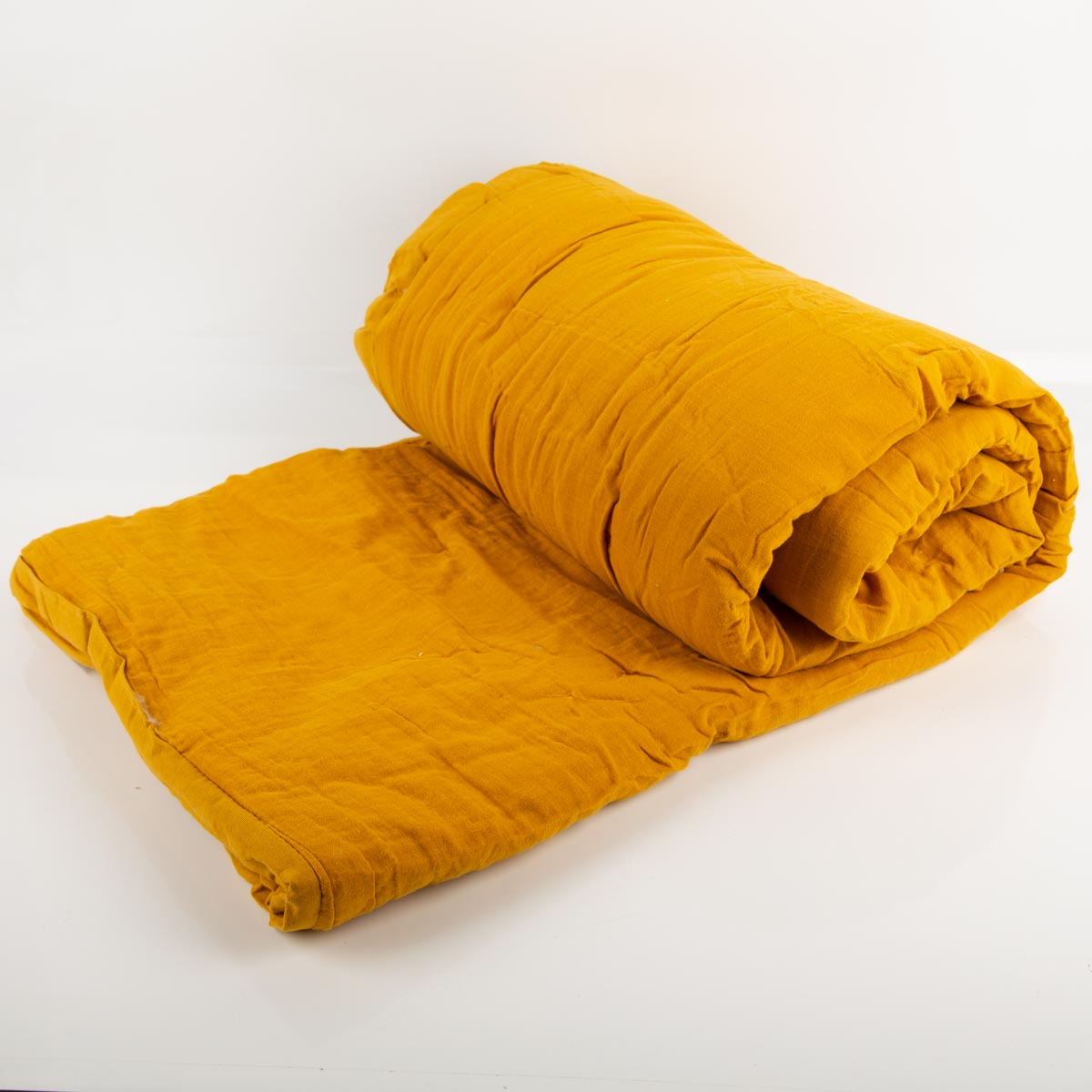 Große Musselindecke aus Baumwolle gefüttert einfarbig senfgelb 180x220cm