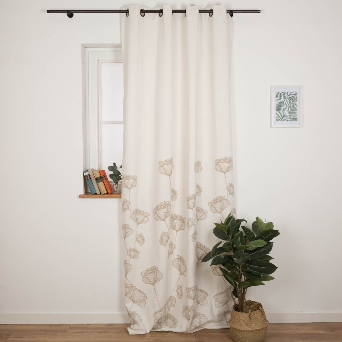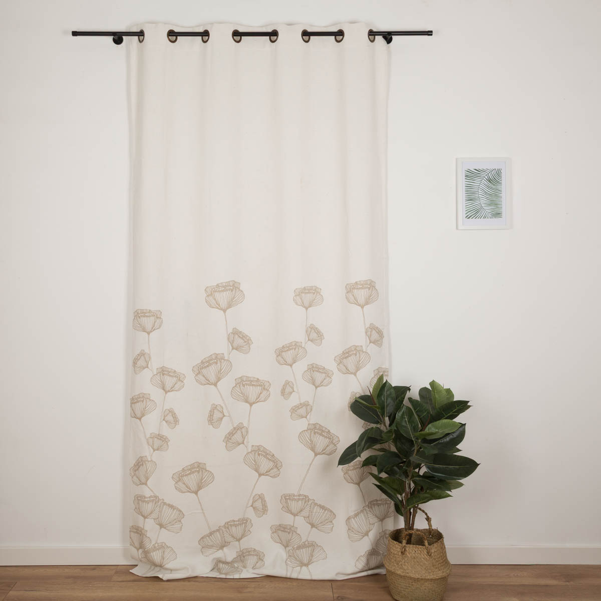 Blickdichter Ösenvorhang mit naturfarbenem Blumenmotiv
