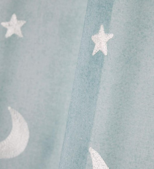 Ösenvorhang Voile mit Stickerei Sterne und Monde Farbverlauf blau 140x260 cm