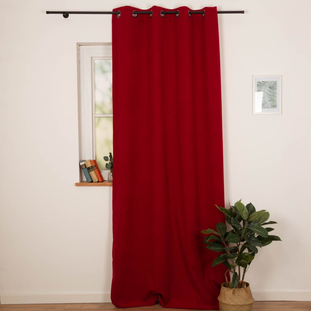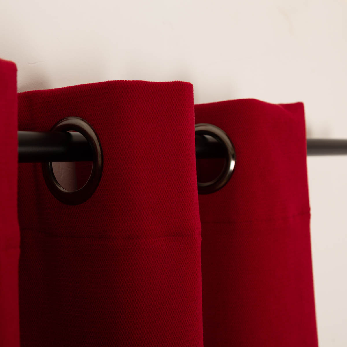 Vorne wurde ein flauschig-weicher, leicht strukturierter Stoff verarbeitet. Der Rotton setzt stilvolle Akzente und wirkt gleichzeitig modern. Die dunkelsilbernen Ösen ergänzen das moderne Design und harmonieren sowohl mit modernen Einrichtungsstilen als auch mit natürlichen Wohnkonzepten.