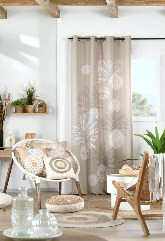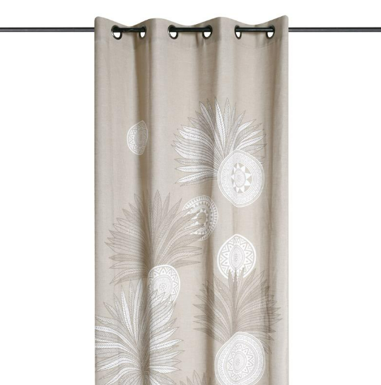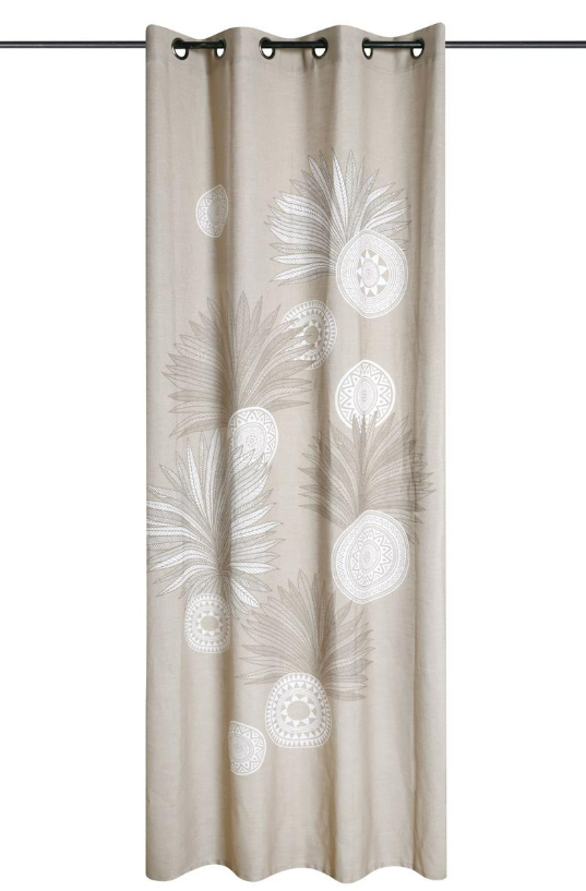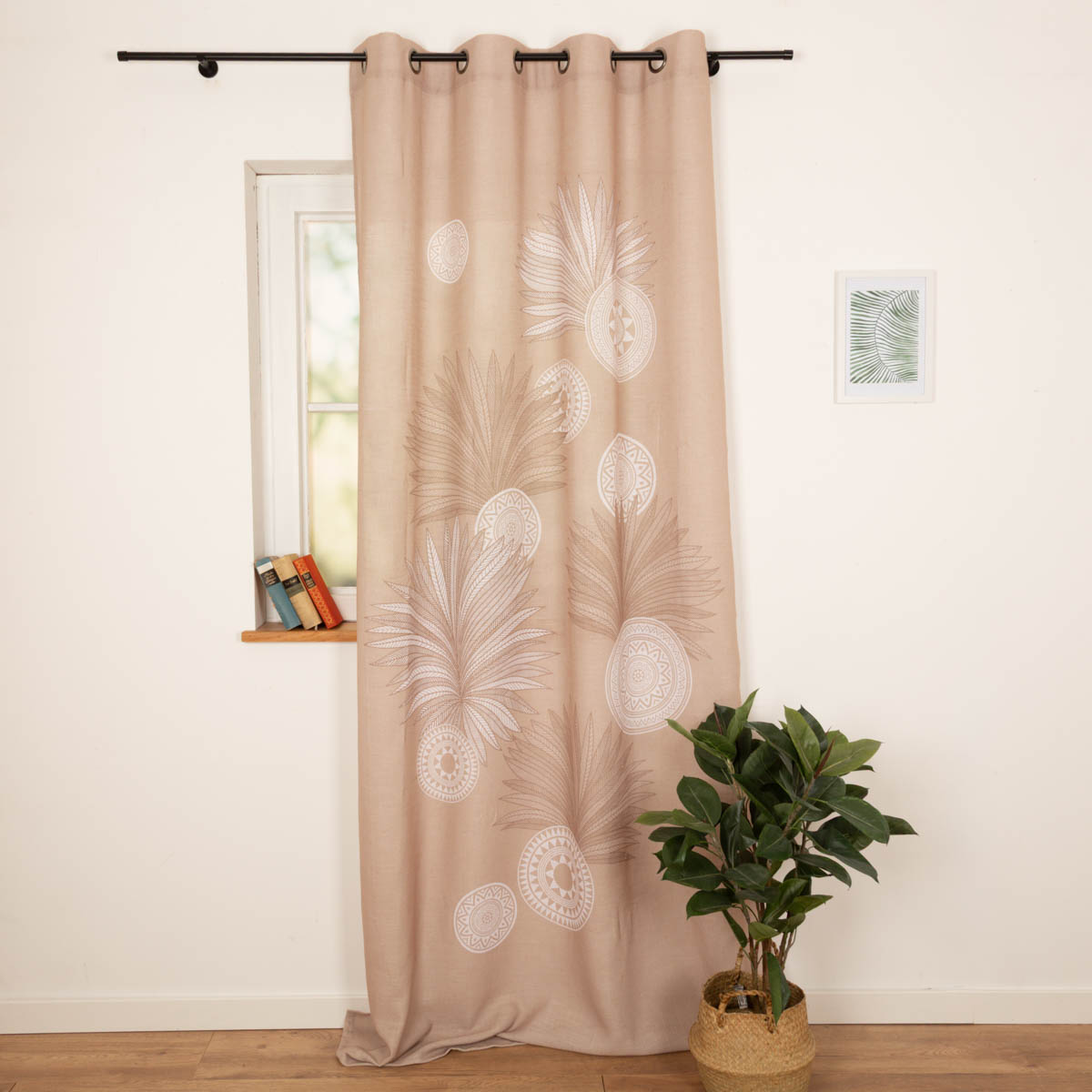 Ösenvorhang mit Leinenstruktur und Palmenblatt-Ornamenten – natürlich und dekorativ