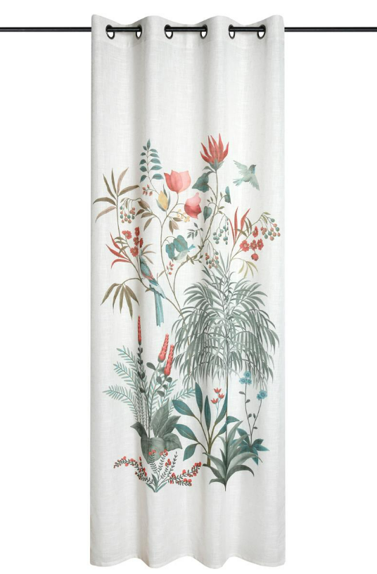 Dieser Ösenvorhang mit detailreichem Vogel- und Blütendessin bringt Leichtigkeit, Natürlichkeit und einen Hauch Exotik in deine Wohnräume. Das exklusive französische Dessin zeigt fein illustrierte Vögel, Blumen, Blüten und Blätter in harmonischen Natur- und Bunttönen und sorgt für eine freundliche, wohnliche Atmosphäre. Ideal für Wohnzimmer, Schlafzimmer oder Essbereich.