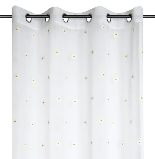 Transparenter Ösenvorhang mit Blütenstickerei in Weiß und Gelb