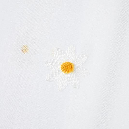 Gleichzeitig sorgt die Blütenstickerei dafür, dass das Fenster nicht schlicht wirkt, sondern eine dekorative und wohnliche Note erhält.