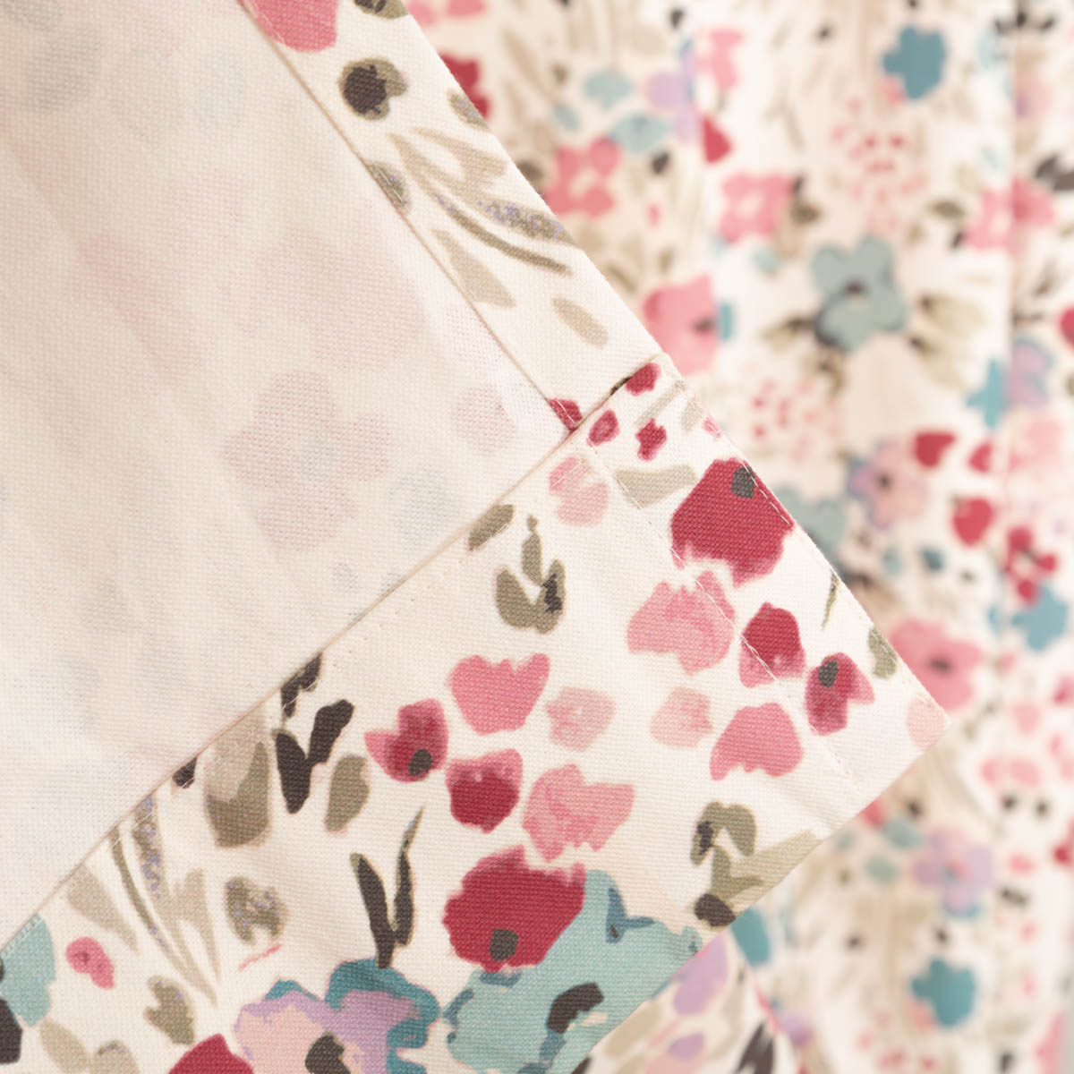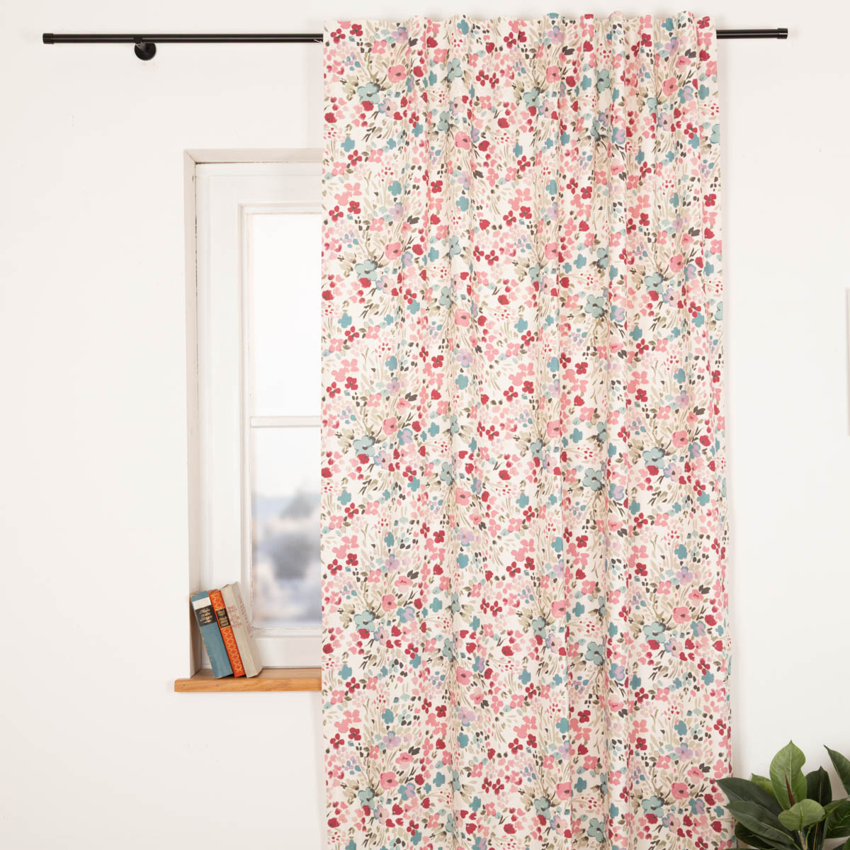 Hochwertiger Vorhang aus reiner Baumwolle mit Aquarell-Blüten in Rosa und Blau