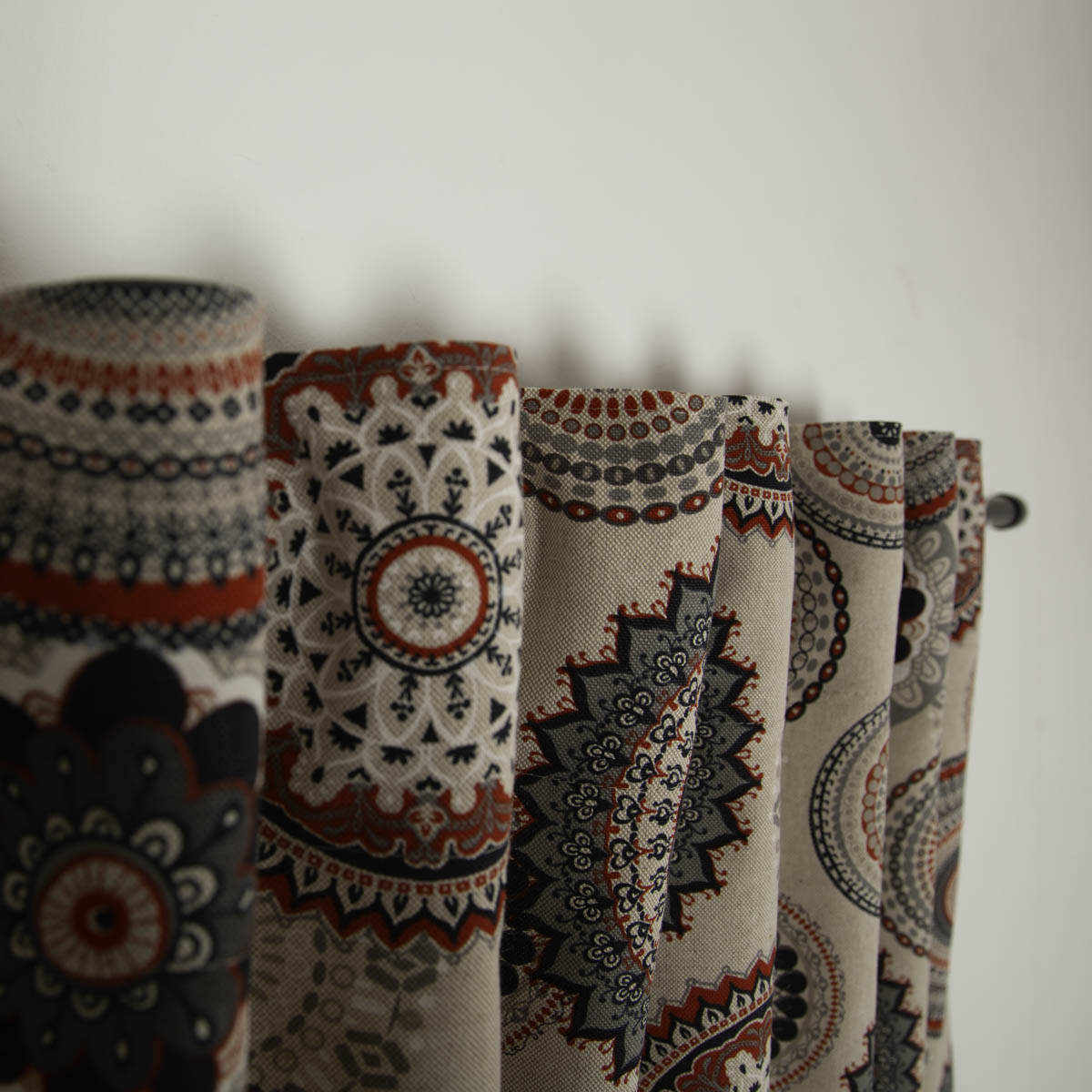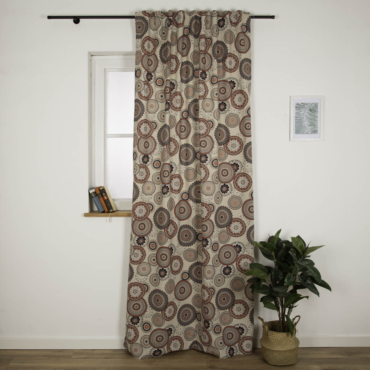 Blickdichter Vorhang im Leinenlook mit Mandala-Design in natur/rot/schwarz für mehr Privatsphäre und eine gemütliche Wohnatmosphäre