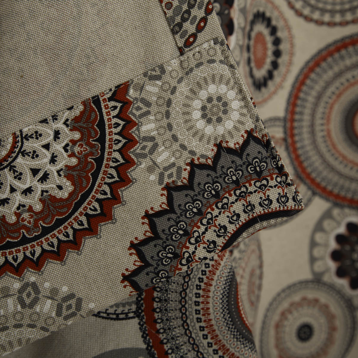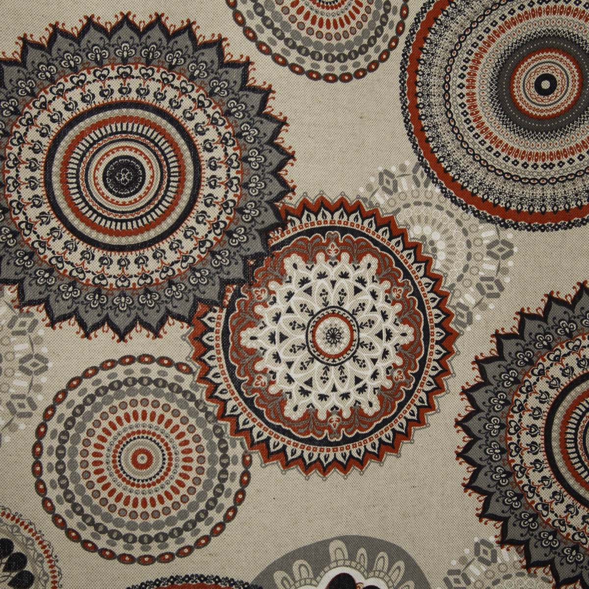Vorhang Leinenlook Mandalas natur rot schwarz mit Smok-Schlaufenband 245x130cm (HxB) oder Wunschmaß von SCHÖNER LEBEN.