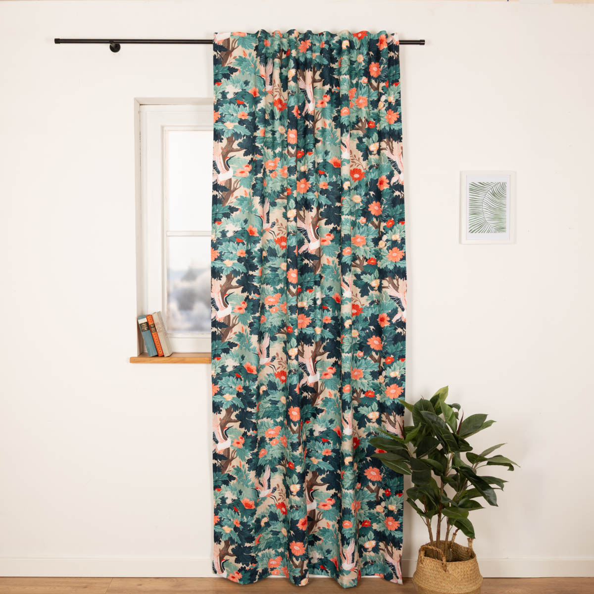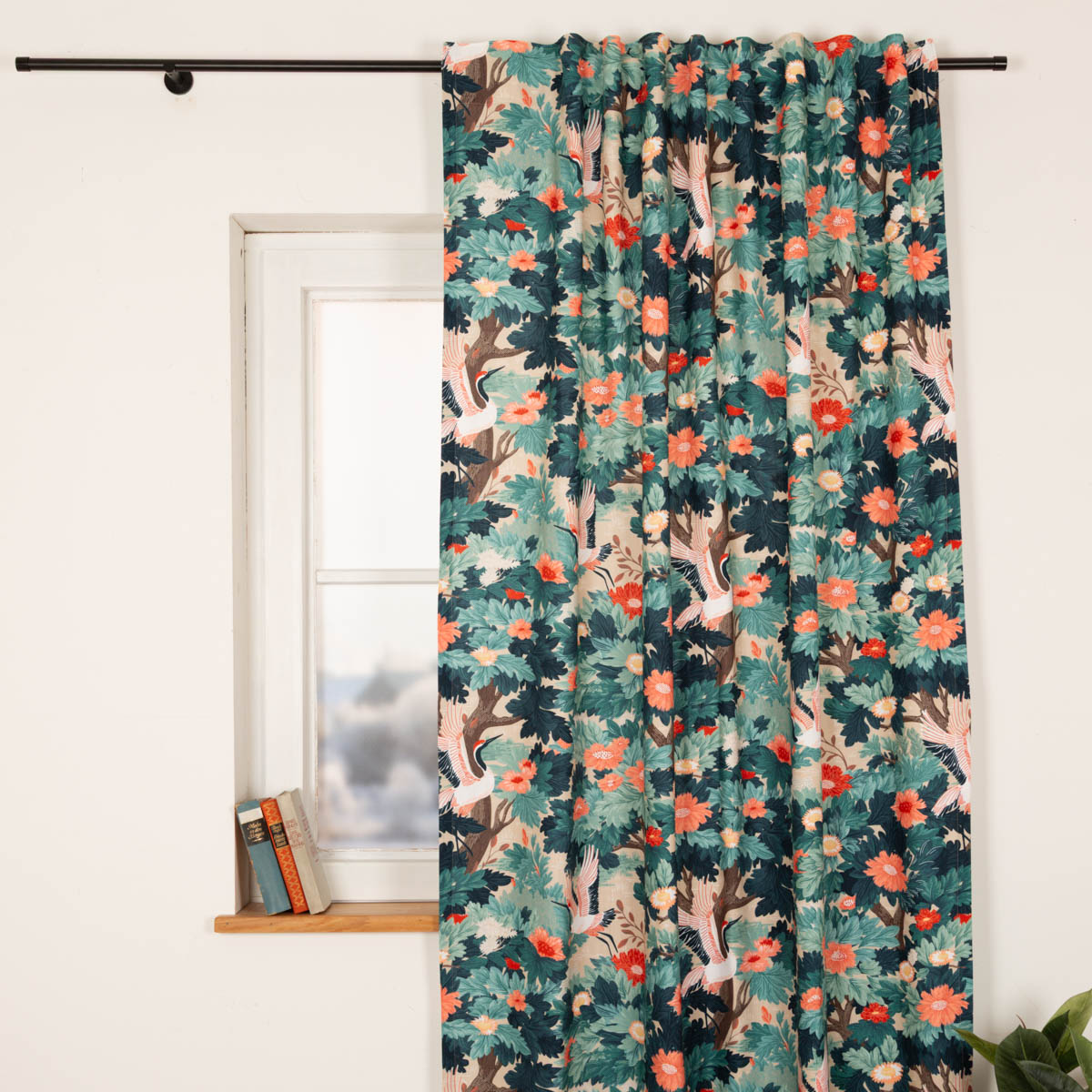 Vorhang Leinenstruktur Kranich & Blumen – exotische Eleganz für dein Zuhause
