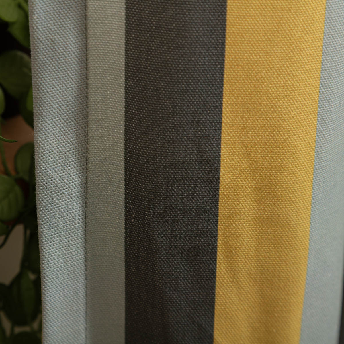 Die besondere Farbkombi von Grün, Grau und Blau verleiht dem Vorhang seine moderne Note mit besonderem Charme. Der Vorhang aus reiner Baumwolle in robuster Halb-Panama-Qualität hat einen natürlichen Charakter und ist perfekt für viele Wohnstile wie Loft, Boho oder Landhaus.