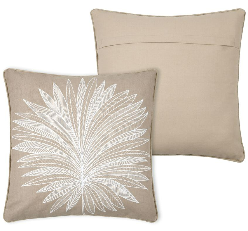 Dekokissen Palmenblätter mit Jute-Kederumrandung natur weiß 50x50 cm