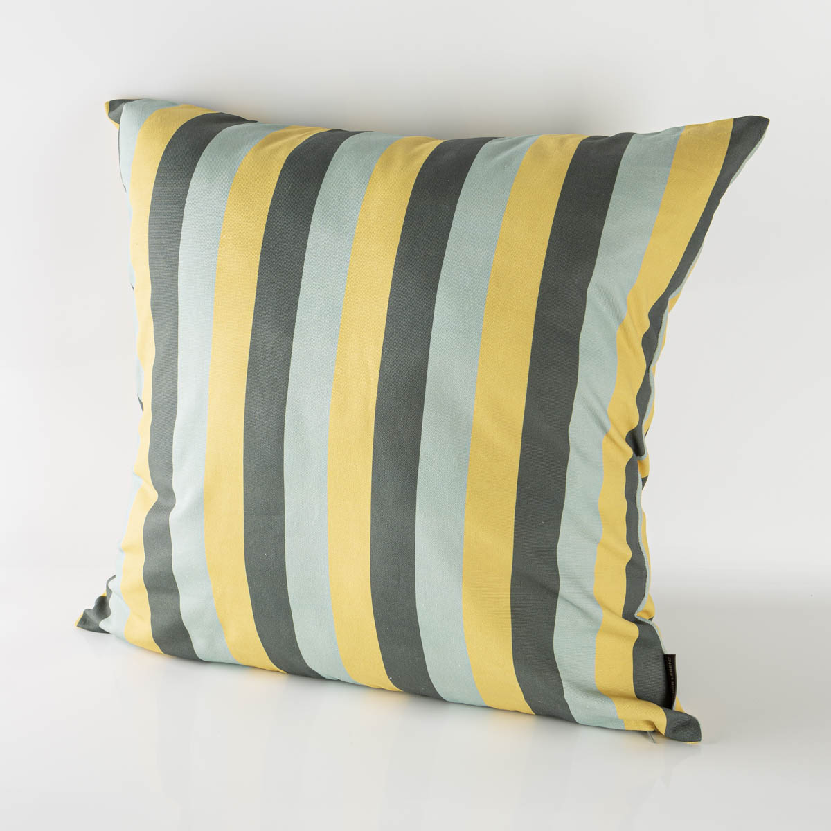Kissenhülle aus Baumwolle mit Streifen in grün, grau und hellblau in versch. Größen von SCHÖNER LEBEN.