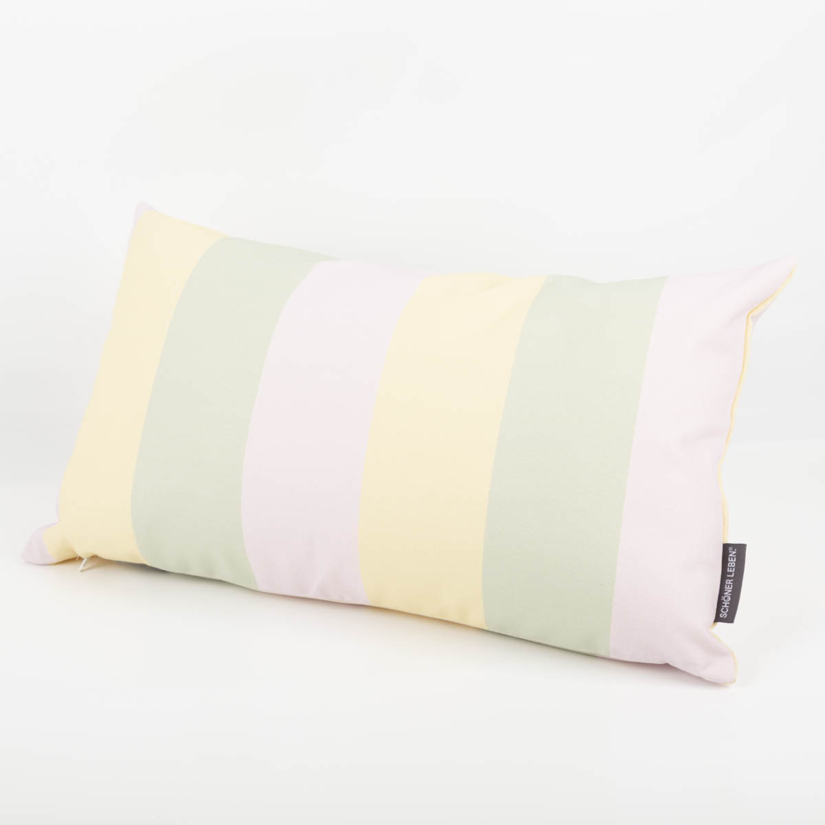 Mit dieser Kissenhülle aus der SCHÖNER LEBEN. Kollektion setzt du frische Akzente in deinem Wohnbereich. Der exklusive Streifen-Digitaldruck in zartem Flieder, Pistazie und Vanille bringt Leichtigkeit und Farbe in dein Zuhause – ob auf dem Sofa, im Bett oder im Lieblingssessel.