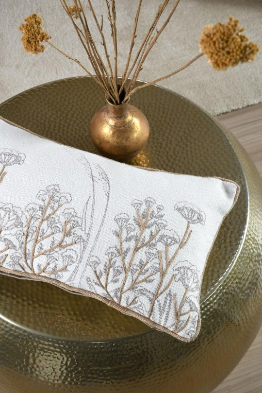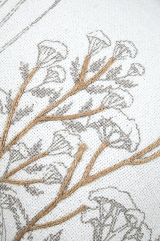 Du liebst natürliche Akzente? Dieses rechteckige Kissen bringt Ruhe und Leichtigkeit in dein Zuhause. Auf der weißen Vorderseite treffen dezente Blumen- und Gräsermotive auf applizierte Naturfaser-Details; die Kederumrandung in Natur setzt einen klaren Rahmen. Dank Reißverschluss auf der Unterseite lässt sich der Bezug schnell abnehmen – das Füllkissen ist schon dabei.
