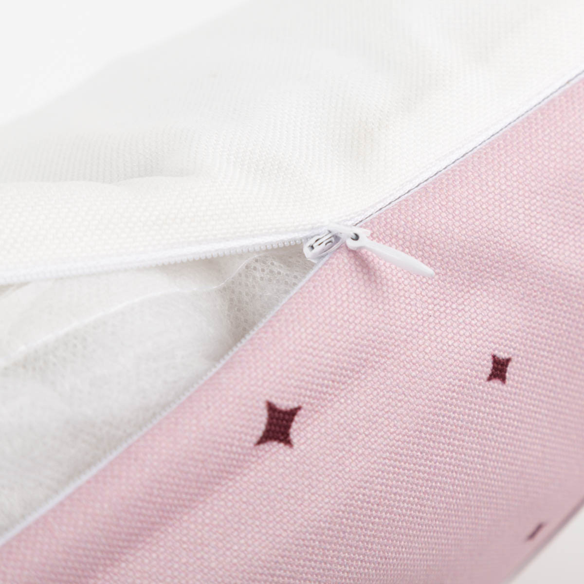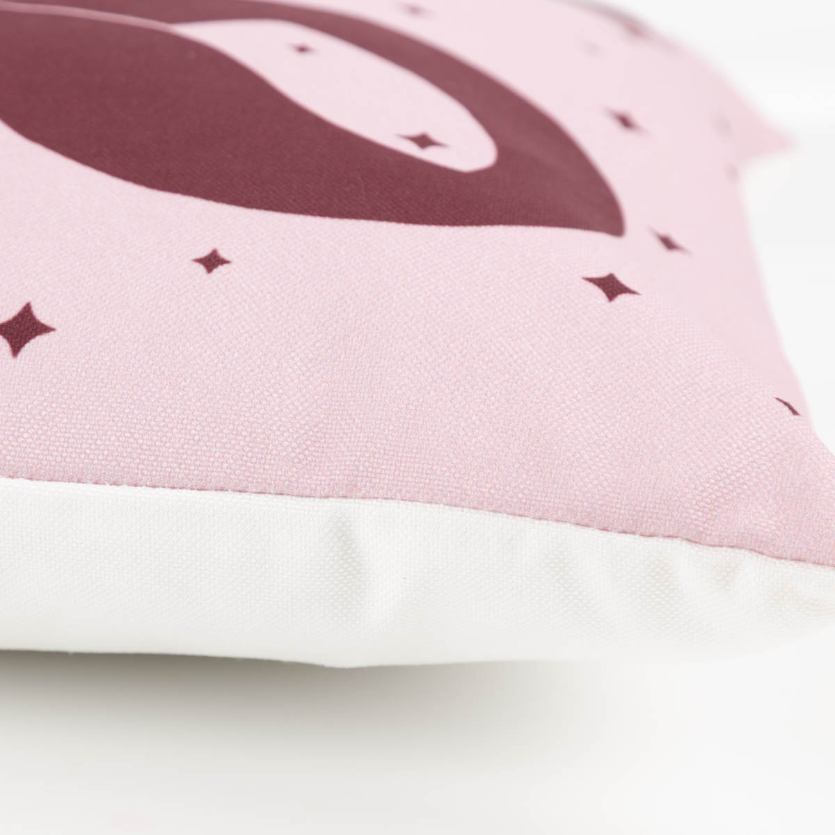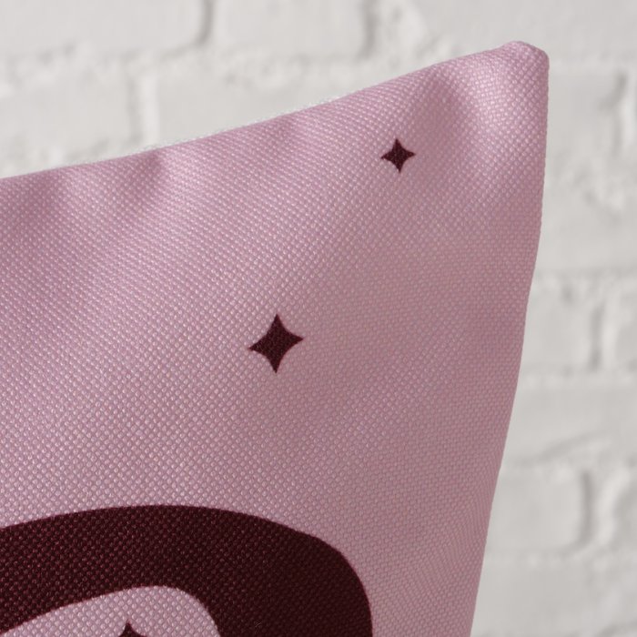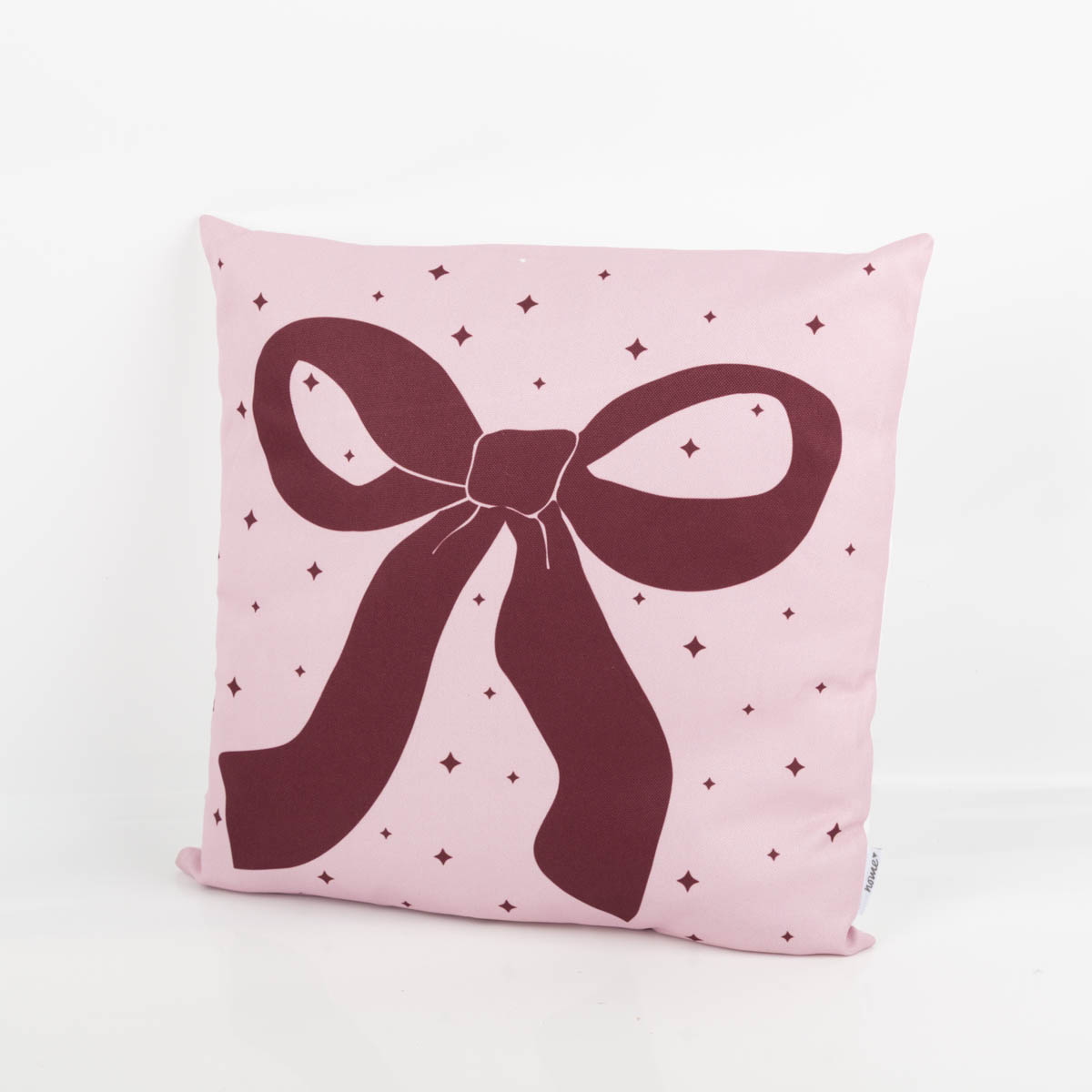 Motiv/Farbe: rosa Kissen mit bordeauxroter Schleife, kleine Sternchen