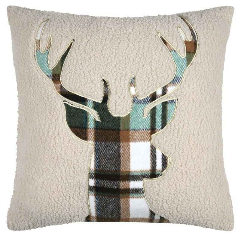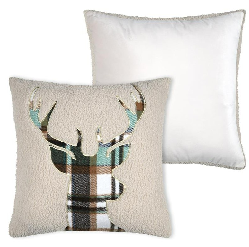 Kissen Hirsch 45x45 cm Teddyplüsch mit Applikation beige