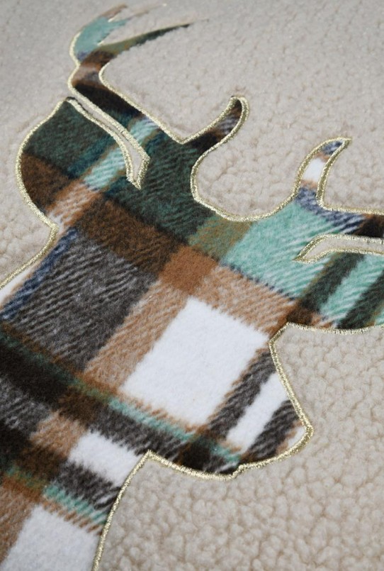 dekorativ: Hirsch-Applikation in Karodesign mit goldfarbiger Einfassung