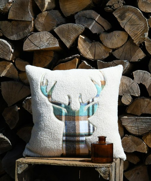 Kissen „Hirsch“ aus Teddyplüsch – 45x45 cm