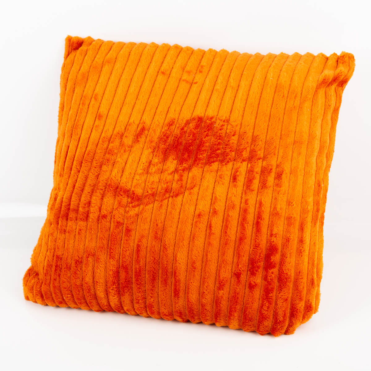 Kuschelkissen aus Plüsch Cordoptik Streifen orange 45x45cm