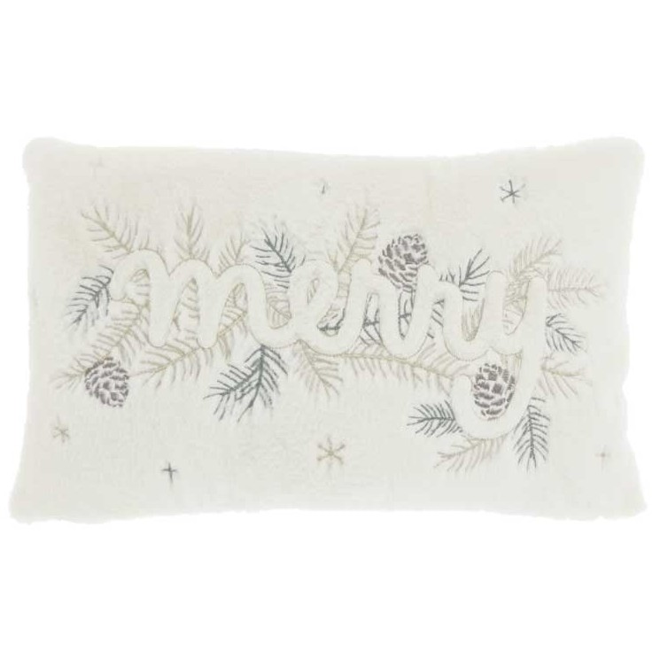 Kuschelkissen Weihnachtskissen Merry Plüsch bestickt weiß 30x50cm