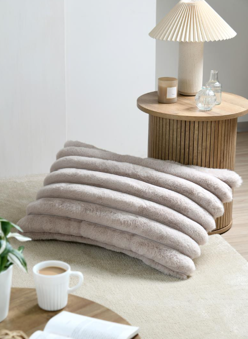 Kuschelkissen XL aus Plüschfell mit Streifen in ecru – 50x80 cm
