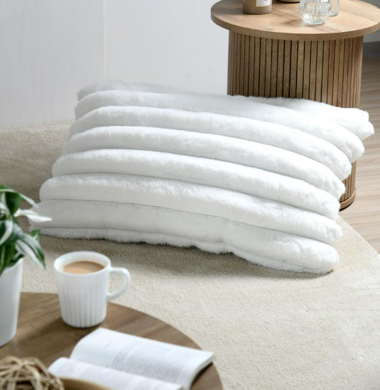 Kuschelkissen XL aus Plüschfell mit Streifen in weiß – 50x80 cm