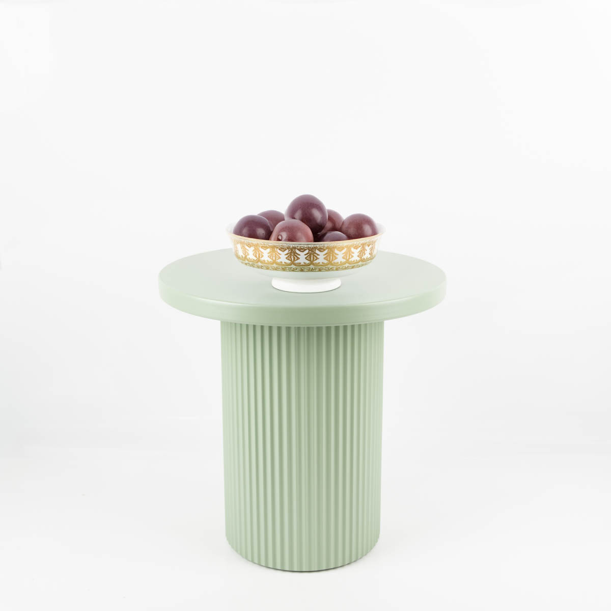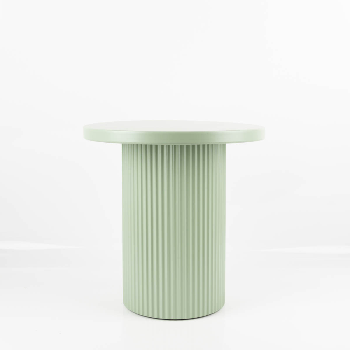 Beistelltisch in Mintgrün mit geriffelter Säule – Ø 40 x H 40 cm