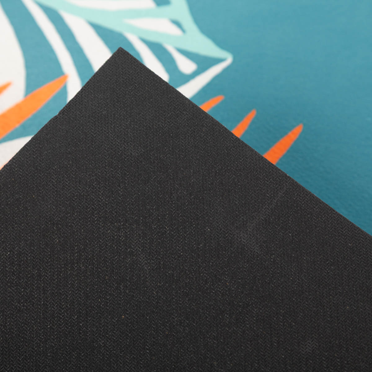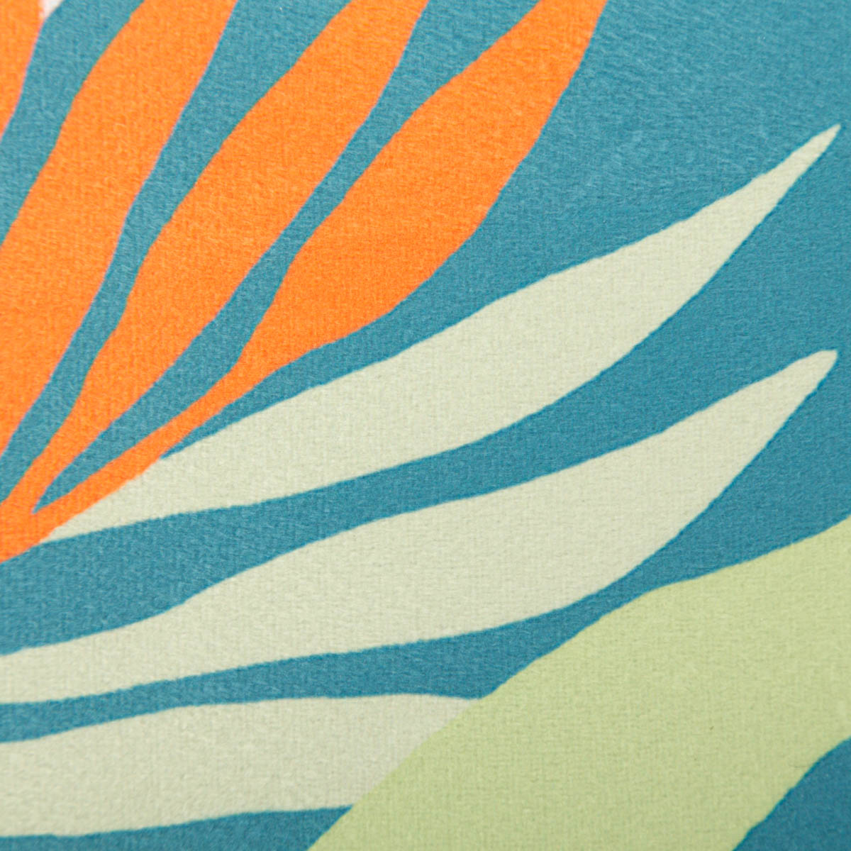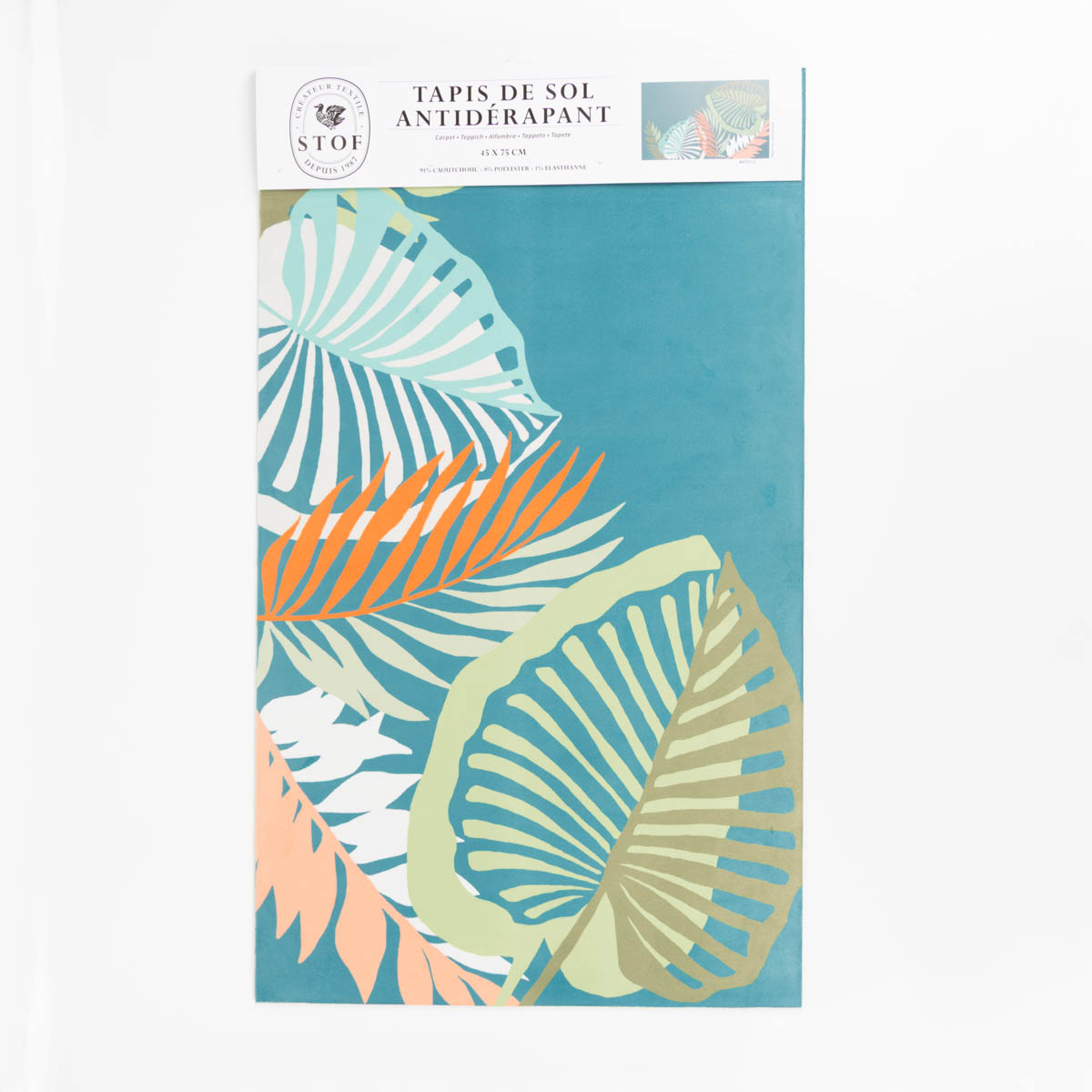 Waschbare Fußmatte mit tropischem Blätter-Dessin in Türkis und bunten Farben
