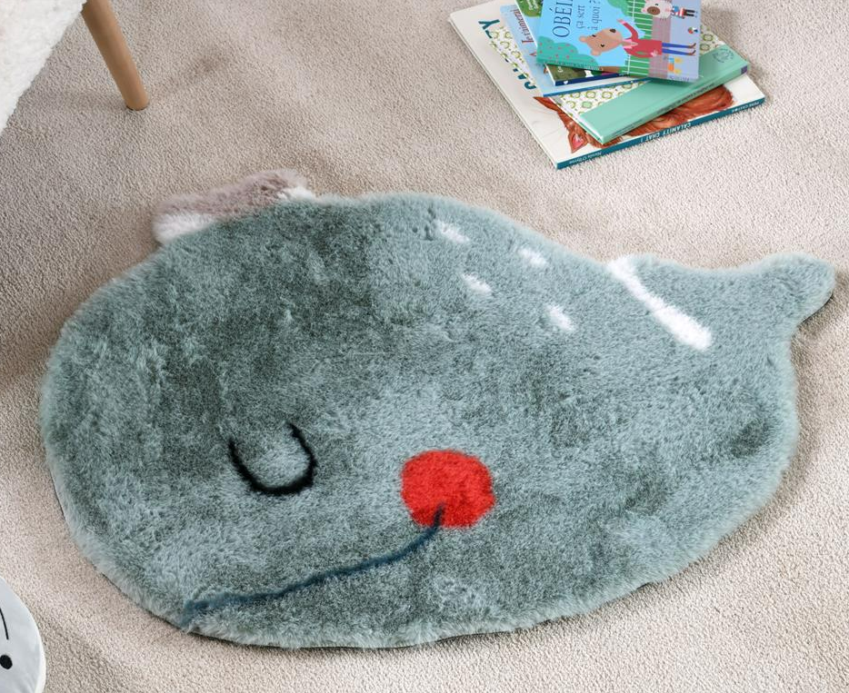 Kuschelig weicher Kinderteppich in niedlicher Walfischform für Baby- und Kinderzimmer