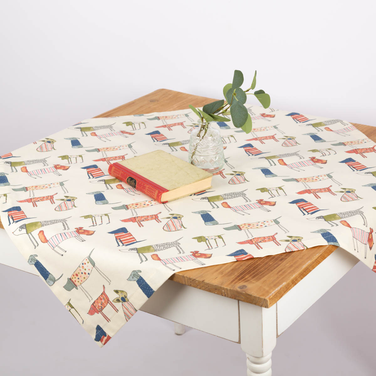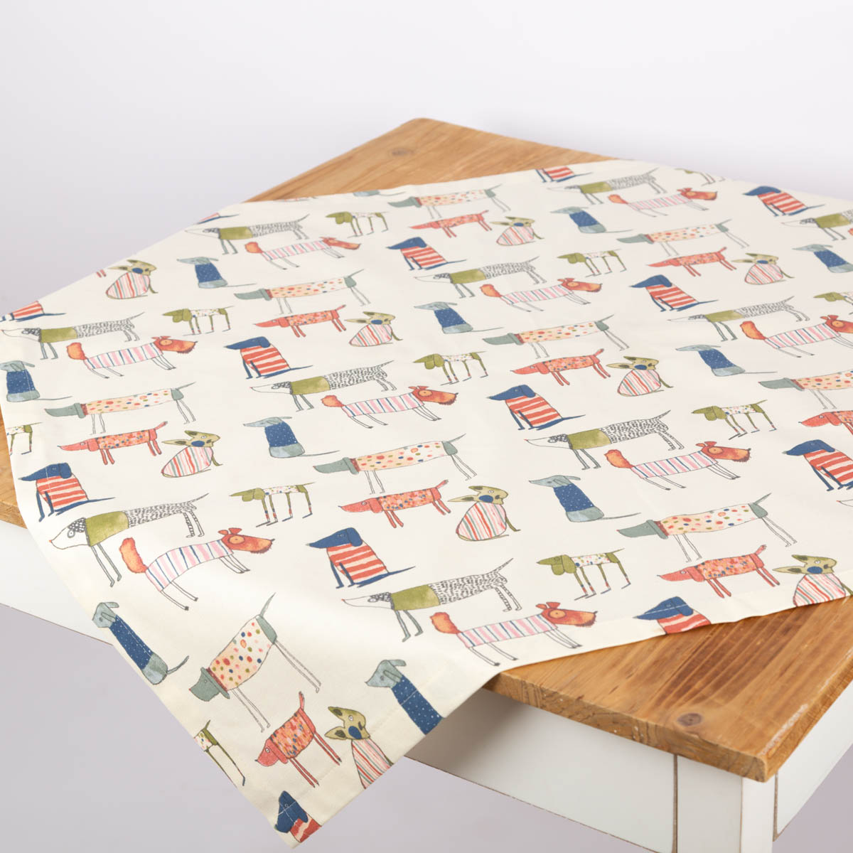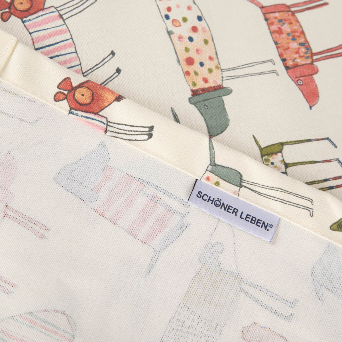 Die Mitteldecke mit wunderschönem Hunde-Print in bunten Farben aus unserer SCHÖNER LEBEN. Kollektion ist ein toller Hingucker für deinen Tisch. Die Hunde sind abstrakt mit vielen liebevollen Details gezeichnet und verleihen der Tischdecke seinen einzigartigen Charme. Die Tischdecke aus reiner Baumwolle hat einen natürlichen Charakter und macht dein Zuhause noch schöner und gemütlicher.