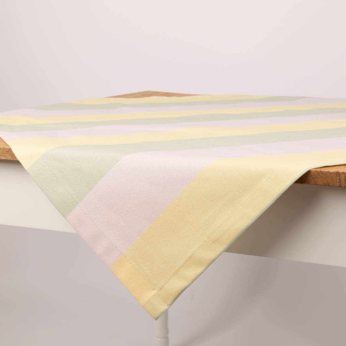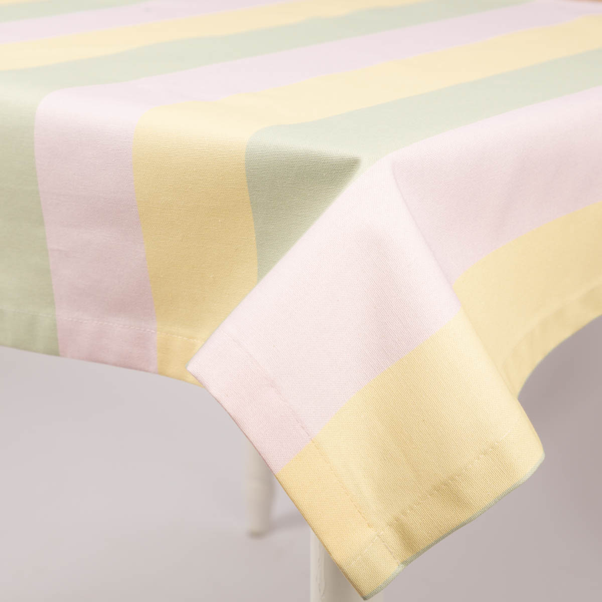Tischdecke mit Streifen in Flieder, Vanille und Pistazie