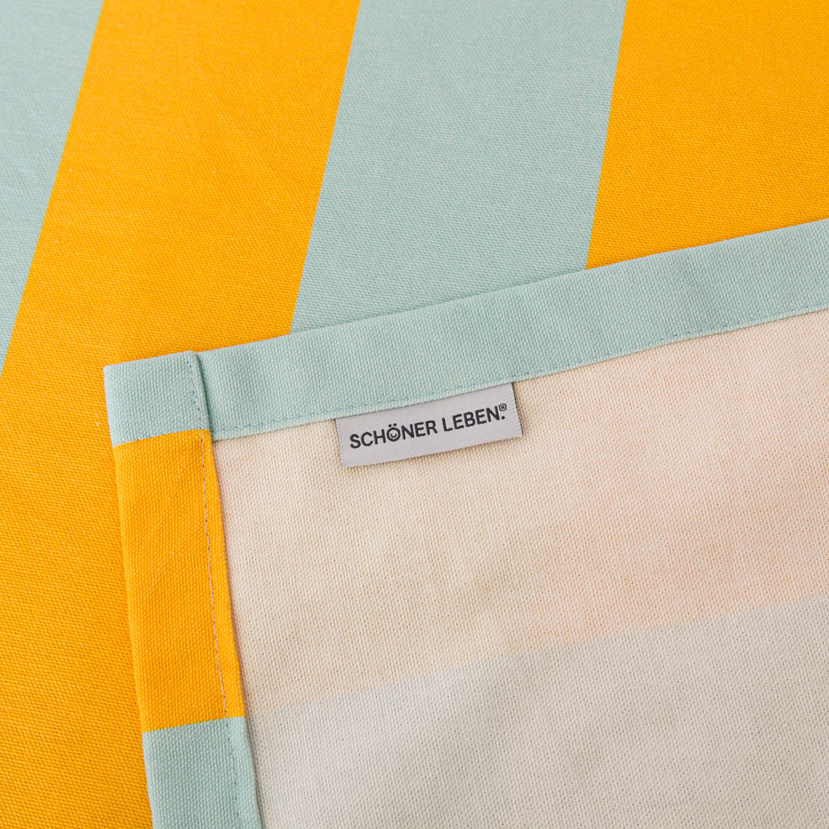 Die wetterfeste Outdoor Tischdecke mit Streifen in Gelb und Hellblau aus unserer SCHÖNER LEBEN. Kollektion ist perfekt für sommerliche Tischdekorationen mit fröhlichem Charme. Das abstrakte Dessin mit Blockstreifen in sommerlichen Farben kommt im Digitaldruck besonders leuchtend und klar zur Geltung und verbreitet sommerliche Vibes.