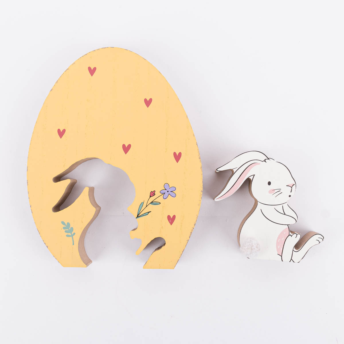 Dekofigur Ei mit Hasen Cut-Out aus MDF in rosa mint oder gelb 14x2,5x18cm