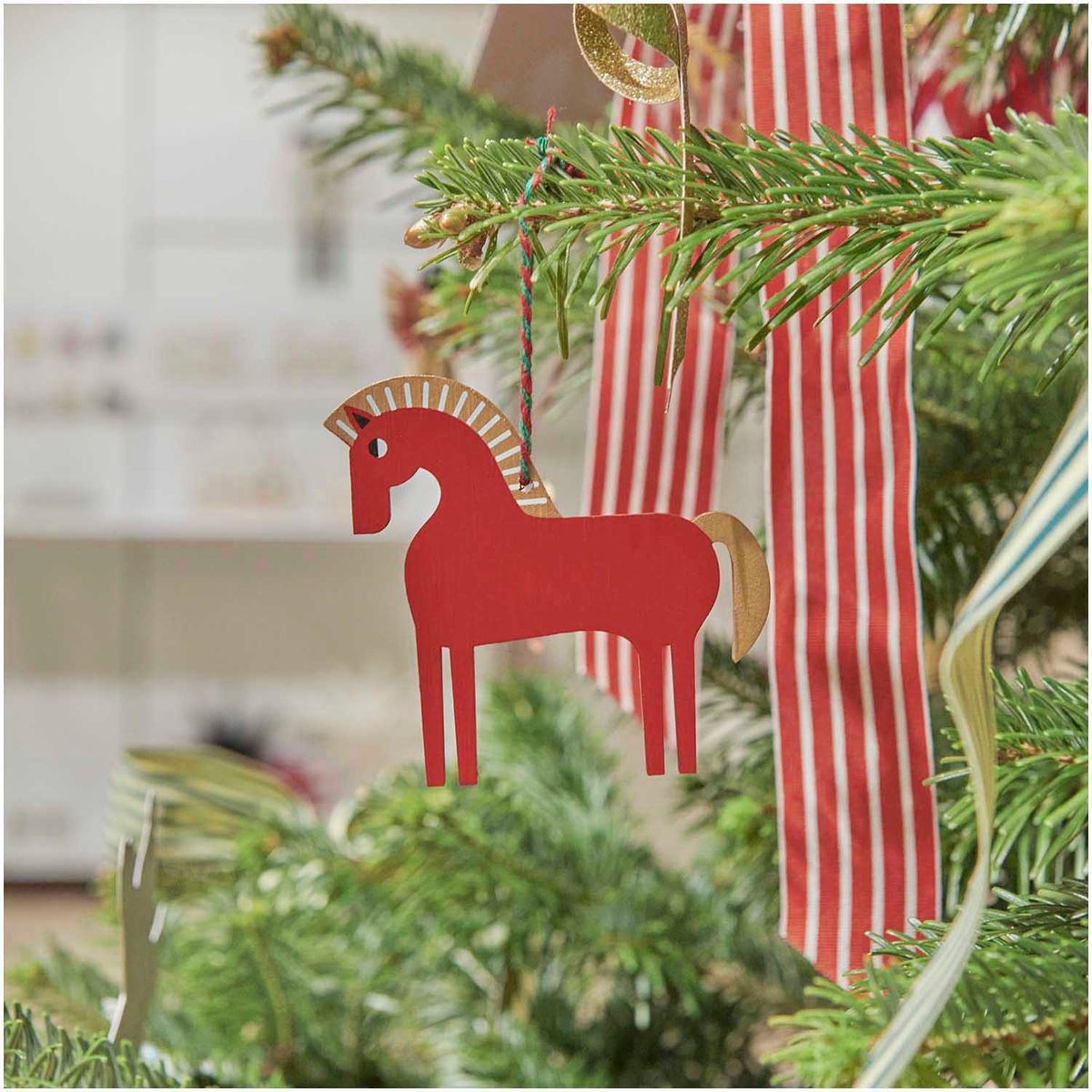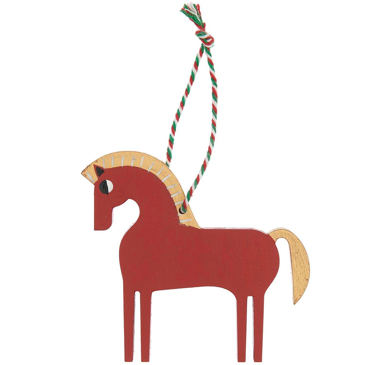 Das kleine Holzpferd ähnelt dem aus Skandinavien bekannte Dalapferd und ist damit genau die richtige Deko in den kalten Wintermonaten! Das kräftige Rot ist ein auffälliger Farbtupfer und die goldfarbigen Akzente machen den Anhänger zu einem festlichen Eyecatcher.