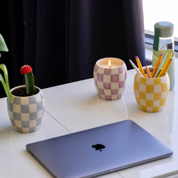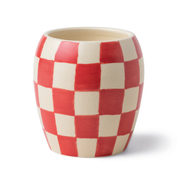 Die Duftkerze Checkmate von Paddywax greift den Trend des Checkerboard-Prints auf und setzt ihn in einem ausdrucksstarken Rotton um. Der handbemalte Keramiktopf macht jede Kerze zu einem Unikat und bringt Farbe, Charakter und modernes Design in deinen Wohnraum.
