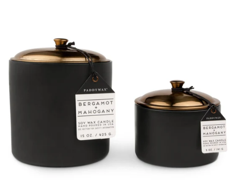 Duftkerze Sojakerze Hygge Black Bergamot & Mahogony 141g im Keramiktopf mit Metalldeckel von Paddywax
