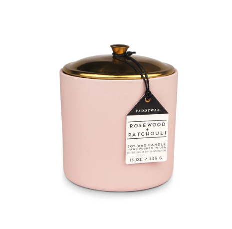 Duftkerze Sojakerze Hygge Blush Rosewood & Patchouli 425g mit 3 Dochten im Keramiktopf mit Metalldeckel von Paddywax