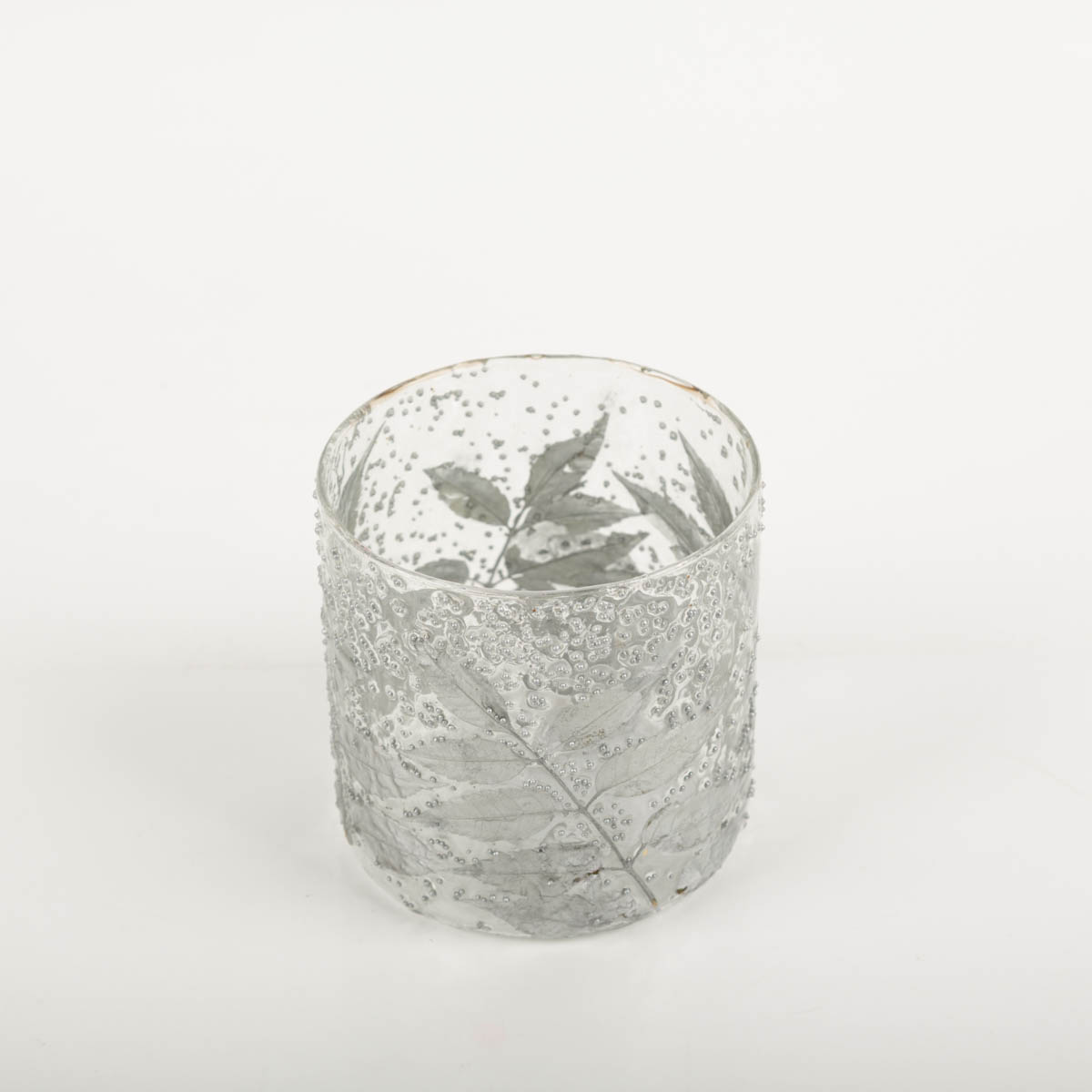 Windlicht Leaves Blätter transparent silber 10x10cm von Werner Voss