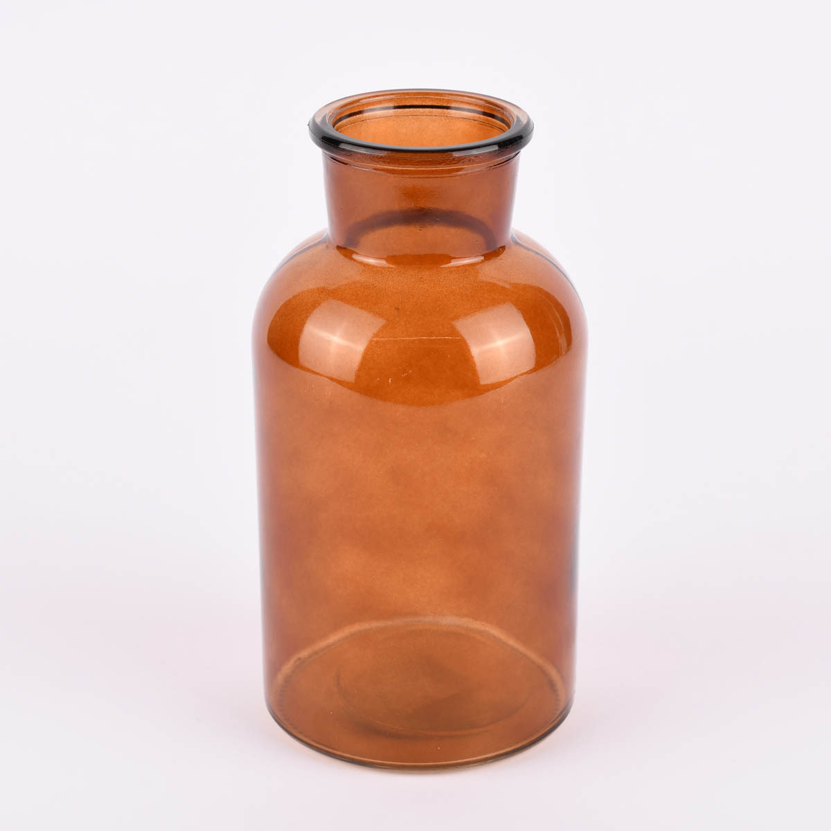 Die Form der Flasche ist zylinderförmig und erinnert durch die unregelmäßige, braune Färbung an ein klassisches Apothekerglas. In dieser tollen Deko Flasche ist ein kleines Blumenarrangement perfekt dekoriert und setzt wunderbare farbliche Akzente in deinem Zuhause!